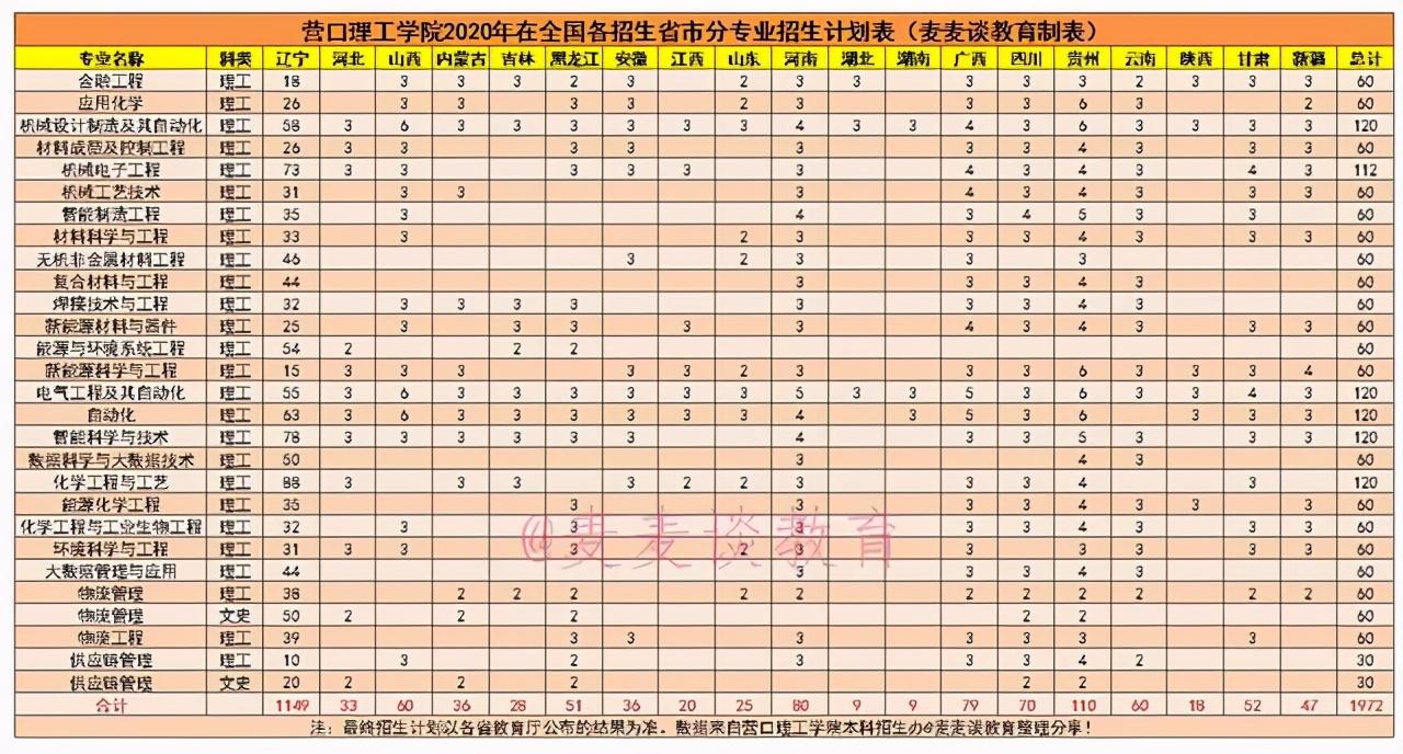 注:文中数据均来自营口理工学院本科招生办@麦麦谈教育整理,仅供各届高考生填报志愿作参考。如有侵权,请联系删除!