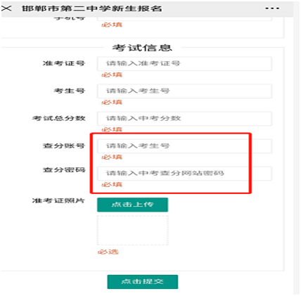2、请立即点击“填报成绩”处,完善中考相关信息;