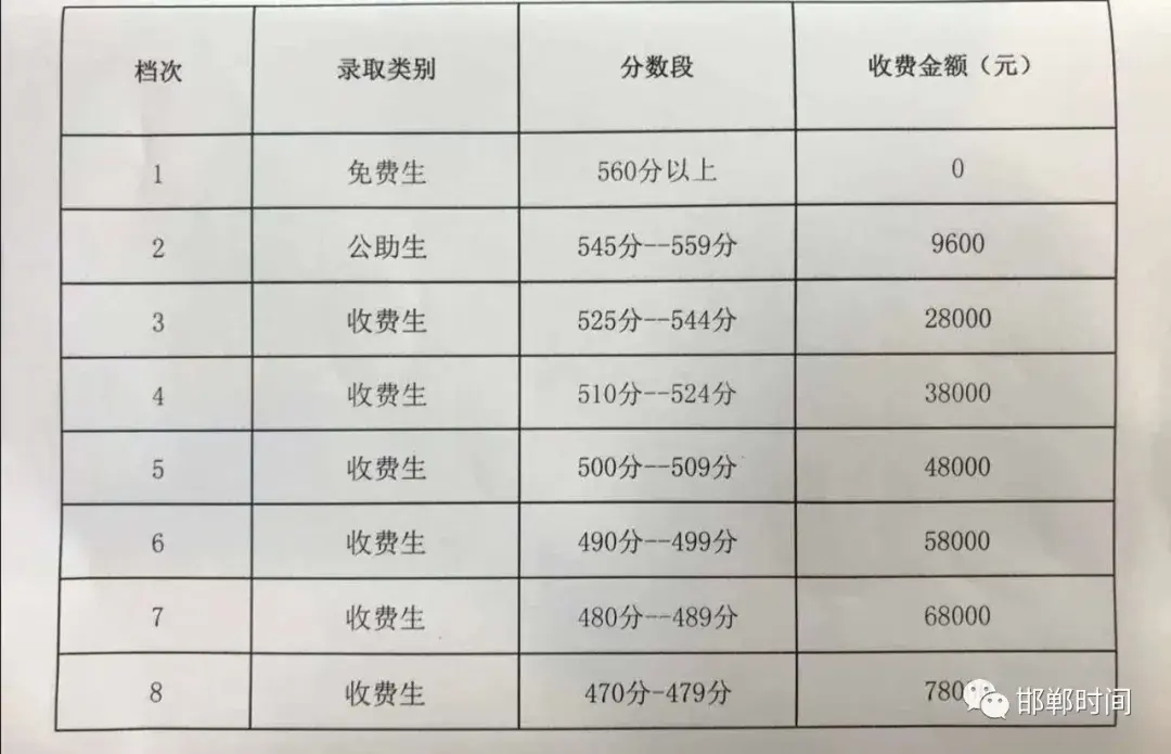 邯郸市第四中学教育集团2020年中招控制线及收费标准