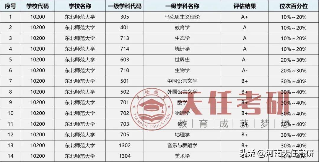 马克思主义理论、教育学、生态学、统计学、世界史、生物学、中国语言文学、外国语言文学、数学、物理学、化学、地理学、音乐与舞蹈学、美术学