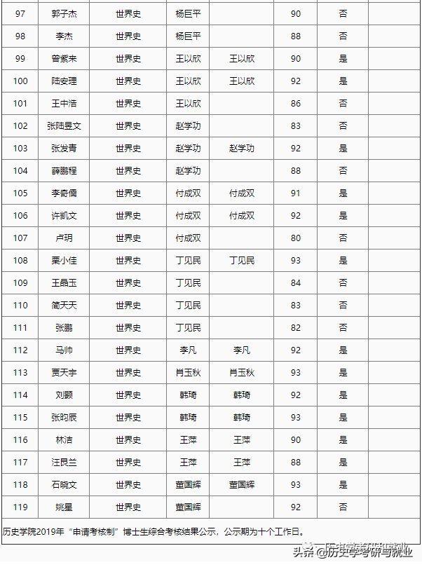 历史学院2019年"申请考核制"博士综合考核结果公示