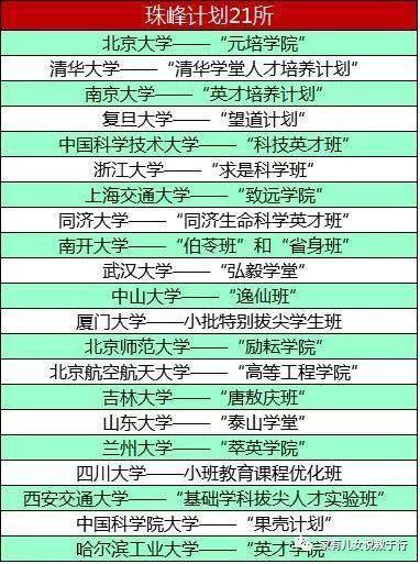 “基础学科拔尖学生培养试验计划”简称“珠峰计划”,是国家为回应“钱学森之问”而推出的一项人才培养计划,旨在培养中国自己的学术大师。该计划由教育部联合中组部、财政部于2009年启动。珠峰计划相当于重点大学里的重点,王牌军中的王牌,目前已经实行珠峰计划的有下列21所高校,在填报志愿的时候一定要特别关注。