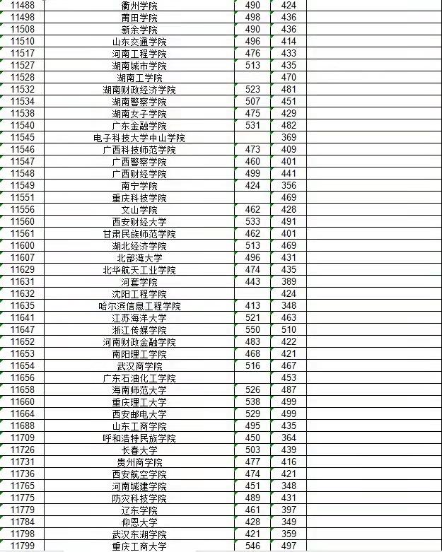 河南城建学院、哈尔滨信息工程学院、湖北商贸学院、大连财经学院、沈阳城建学院、兰州信息科技学院等六所院校的理科投档线都为348分,也就是刚打到理科本科线的水平。这些学校都没有完成招生的计划,仍然需要补录。
