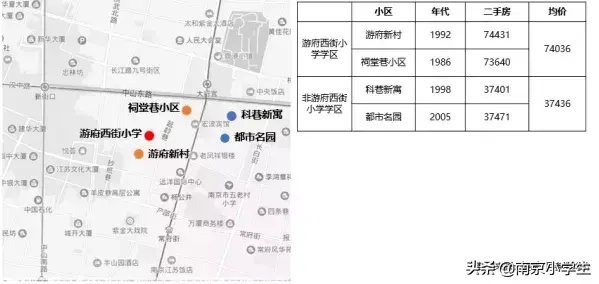 反观游小周边非“学区”二手房,以科巷新寓为例,房龄更新,价格却只有游小一半。可见学区在南京的溢价能力!
