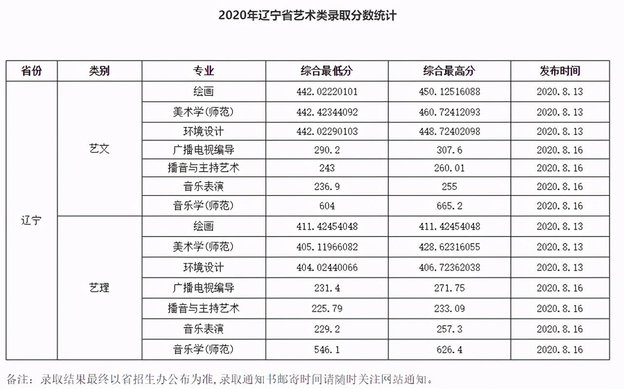 艺术类本科外省仅在河北,山东招生。各专业录取分数线(综合分)如下: