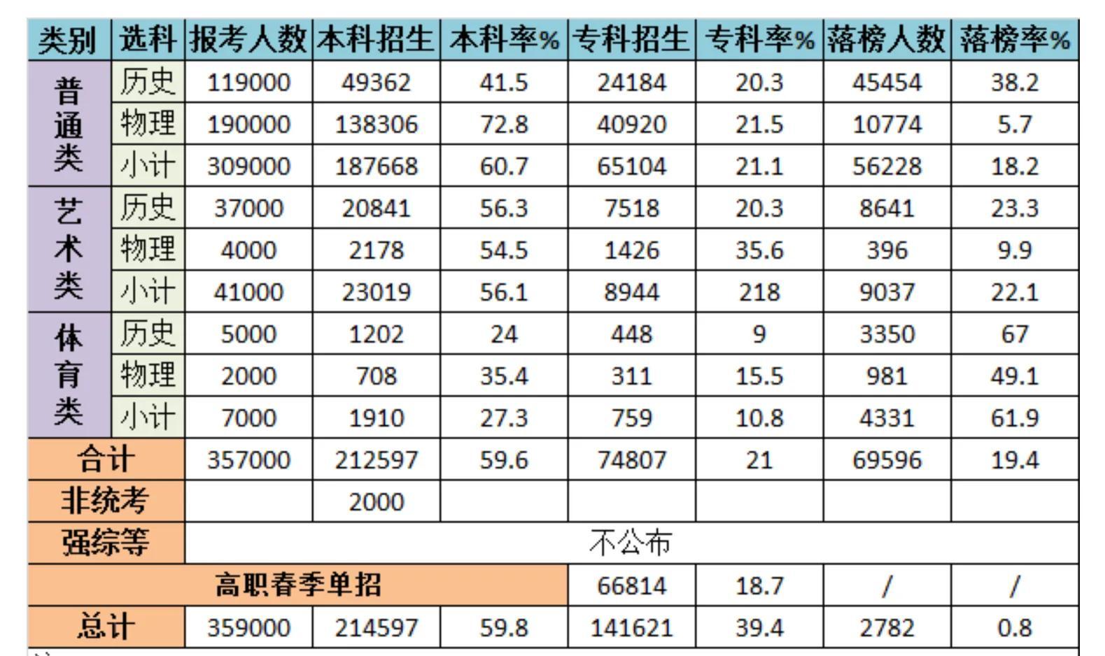2021年,江苏普通类理科生19万人,文科生12万人。理科的本科录取率在73%,文科本科率是42%。