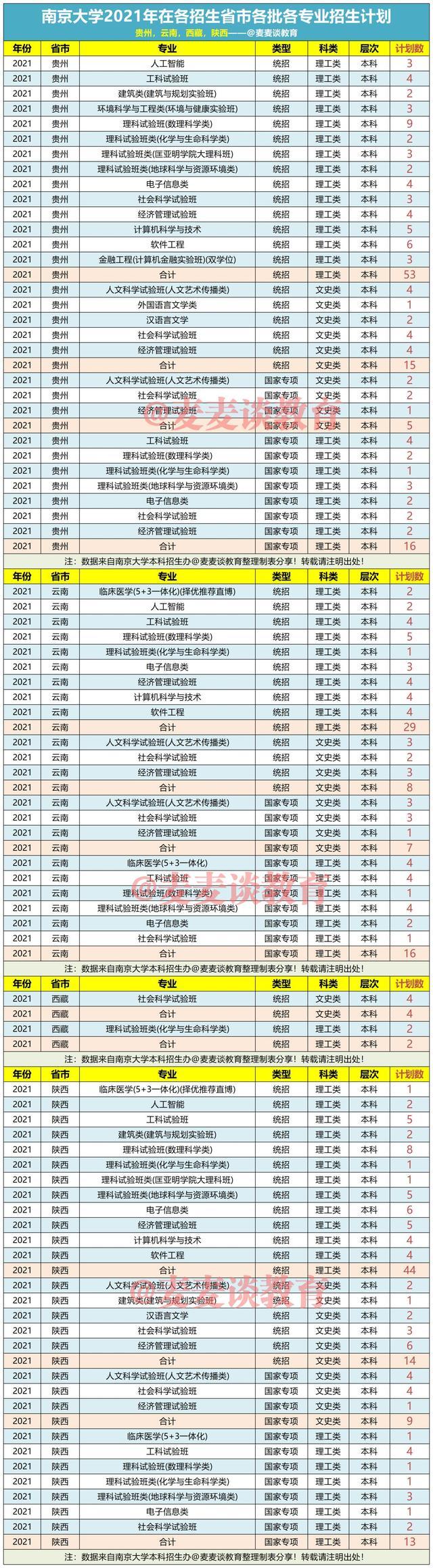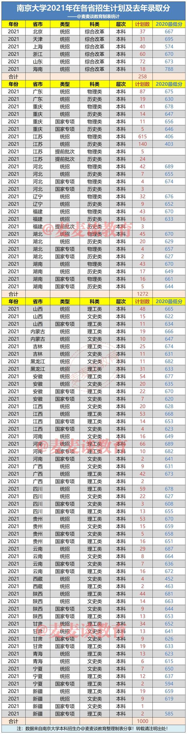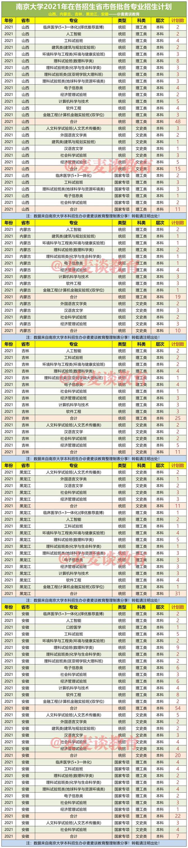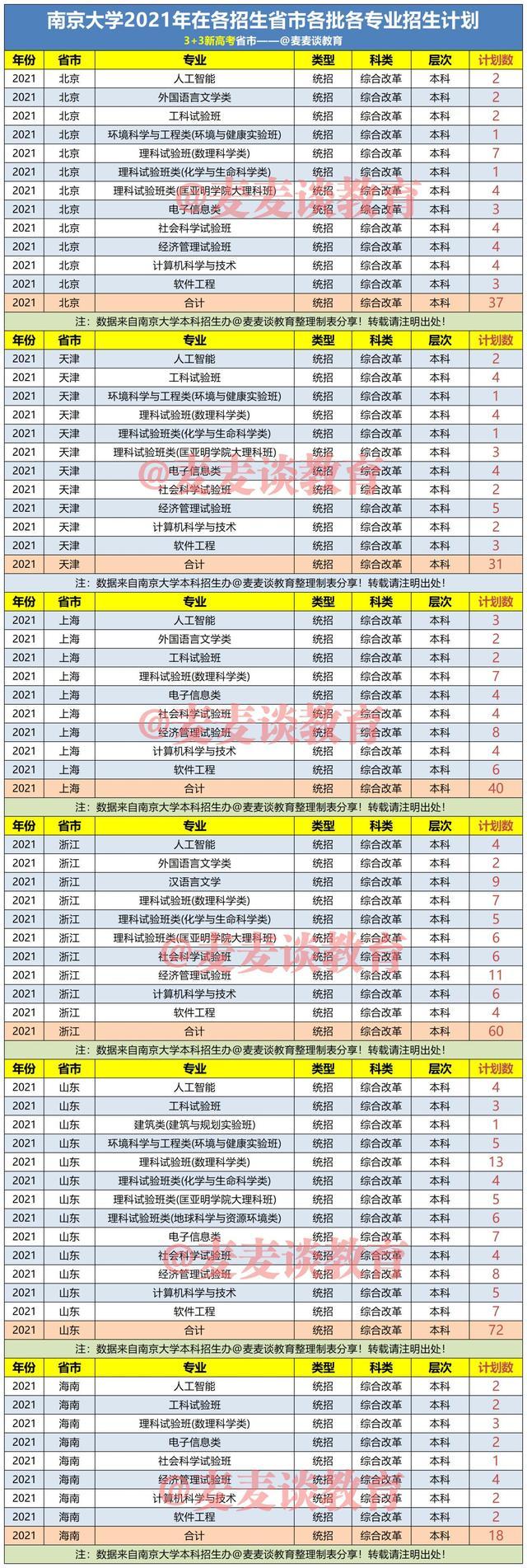 注:文中数据均来自南京大学本科招生办@麦麦谈教育整理制表分析。本文系原创作品如转载引用请注明出处!