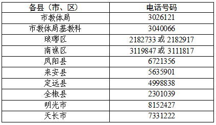 具体可拨打各县(市、区)教体局电话详细咨询: