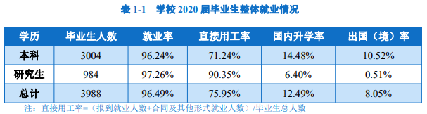 上海海洋大学2020届毕业生共有3988人,其中本科生有3004人,本科生的就业率为96.24%,研究生有984人,研究生的就业率是97.26%。