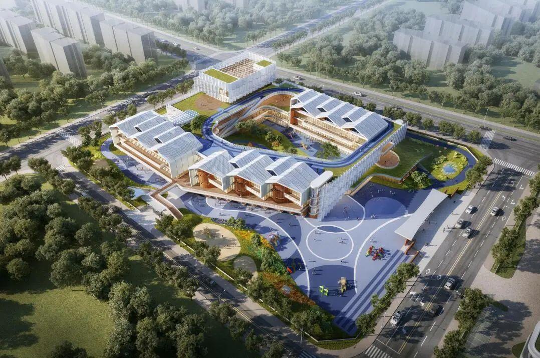 这一校一园选址金坛滨湖新城区域,预计2022年6月竣工。实验小学用地面积105亩,总建筑面积7.02万平方米,办学规模8轨(预留2轨)60班;实验幼儿园用地面积30亩,总建筑面积2.57万平方米,办学规模9轨(预留2班)29班。