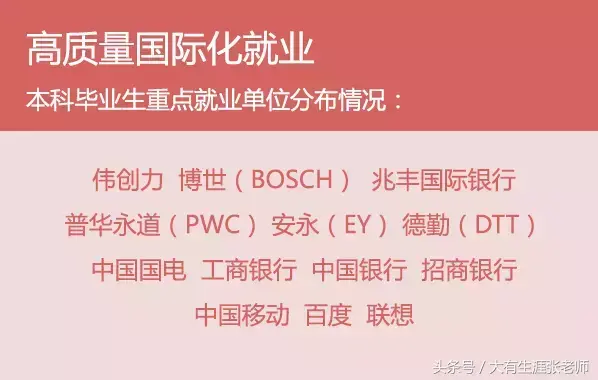 八年来,多家世界知名企业向宁波诺丁汉大学毕业生抛出橄榄枝,并已与宁波诺丁汉大学建立长期招聘合作关系。宁波诺丁汉大学注重培养学生的辩证思维、团队合作精神,并在教学过程中结合中国市场的案例,使学生更为熟悉中国的国情,毕业生具有的中西融汇的特质尤其符合国际化企业对跨文化人才的需求。在近几年经济形势紧张和就业市场竞争异常激烈的大环境下,我校毕业生仍然受到中国乃至世界知名企业和机构尤其是跨国企业的认可。