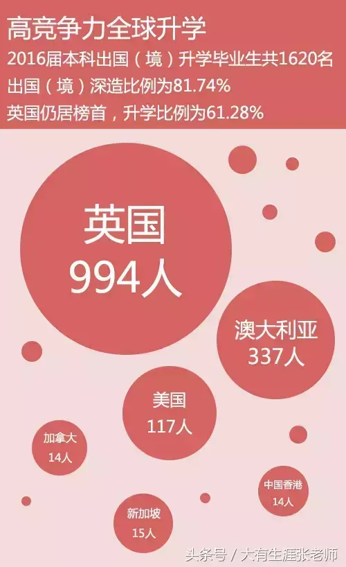 2016届本科毕业生海外升学(含港澳台、中外合作办学境内)为1620人