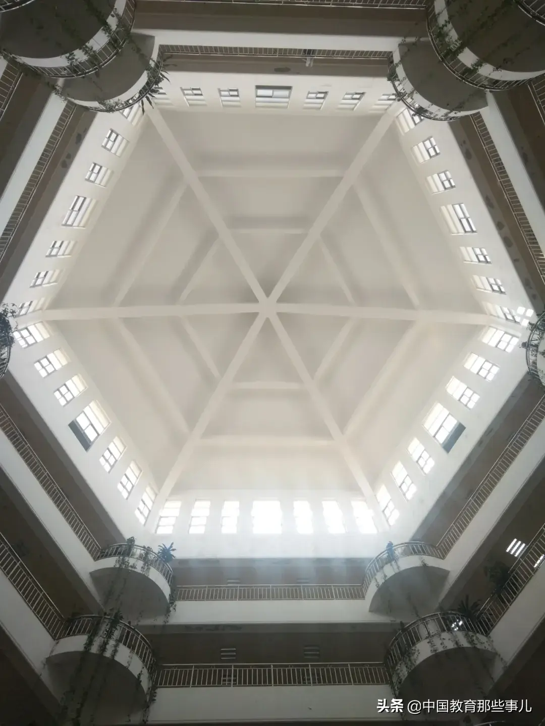 图书馆的落地窗和窗外的绿植,是个适合自习的地方。翔安校区超大的德旺图书馆,站在图书馆中央大厅,一仰头就能透过玻璃穹顶看到厦门的蓝天。(周同学供稿)