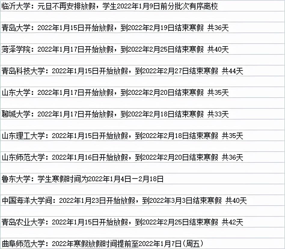 由于疫情的影响,很多院校都已经提前5-14天,而且有些院校准备在12月下旬就开始放假。主要还是根据情况来决定的,结合师生意愿和需求,调整寒假放假时间。