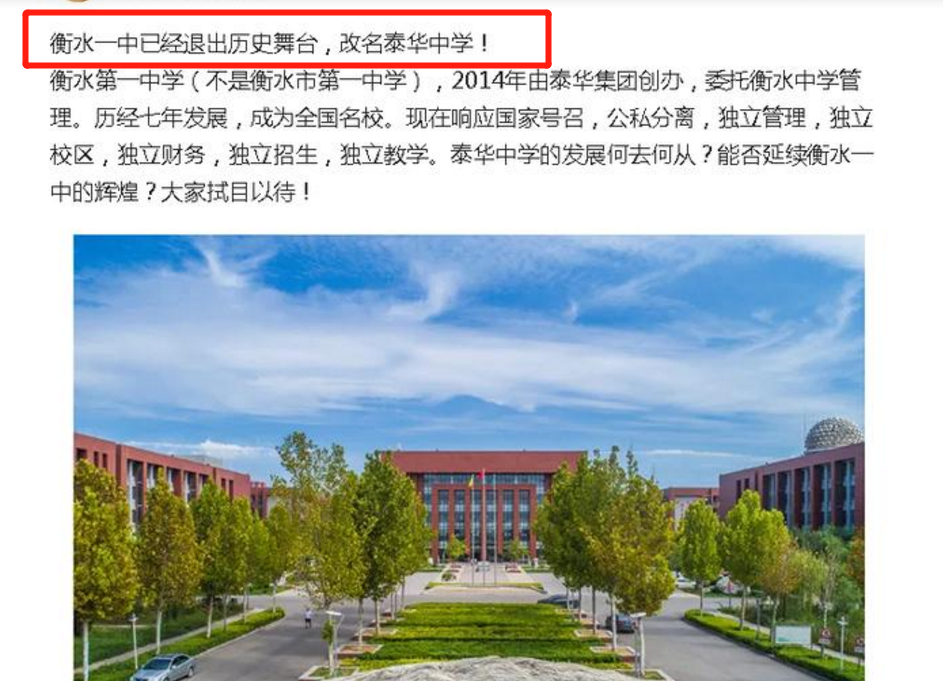 今日话题:你对于网上流传衡水中学改名为泰华中学的消息怎么看?