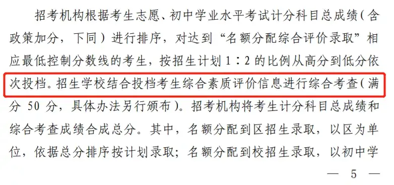 打个比方,假设建平中学明年的计划招生400人,那新政后,它需要拿出200-260人的名额,去走“名额分配综合素质录取”招生通道