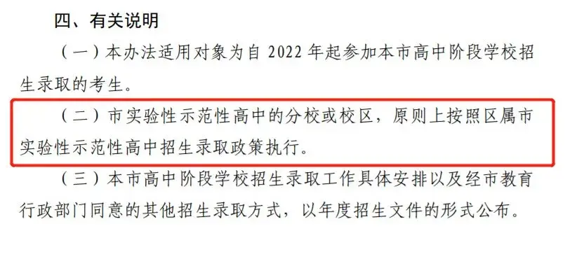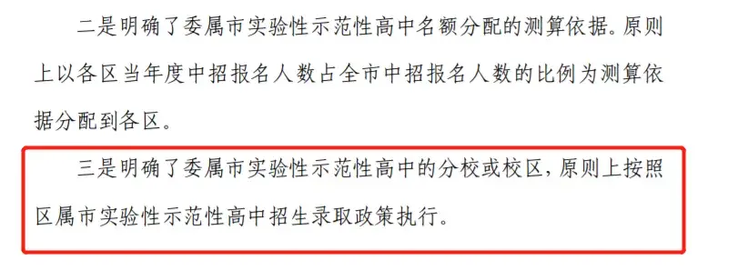 就连委属市实验性示范性高中的分校或者校区,原则上,也是按照区属市实验性示范性高中招生录取政策来