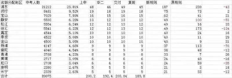 假设浦东上一年中考人数占比全市23%,那浦东获得的名额分配人数就是30人左右