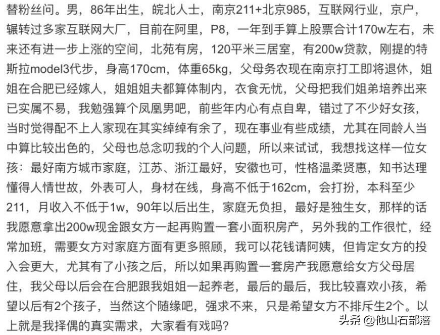 前几个月,有位资深码农,自称是位凤凰男,要相亲找老婆,提出了各种要求,被女网友骂死。这件事先不论对错,这位凤凰男的薪水是实实在在的,他没有外力依靠,也没干惊天动地的事情,或者极为运气,就是普普通通的,一位211本科生,985研究生,在各个互联网公司辗转打工,他就获得了170万的年薪。这是一个很惊人的数据。我们A股上市公司董事长的平均年薪都没有达到百万。而资深码农有这个收入的不算少。