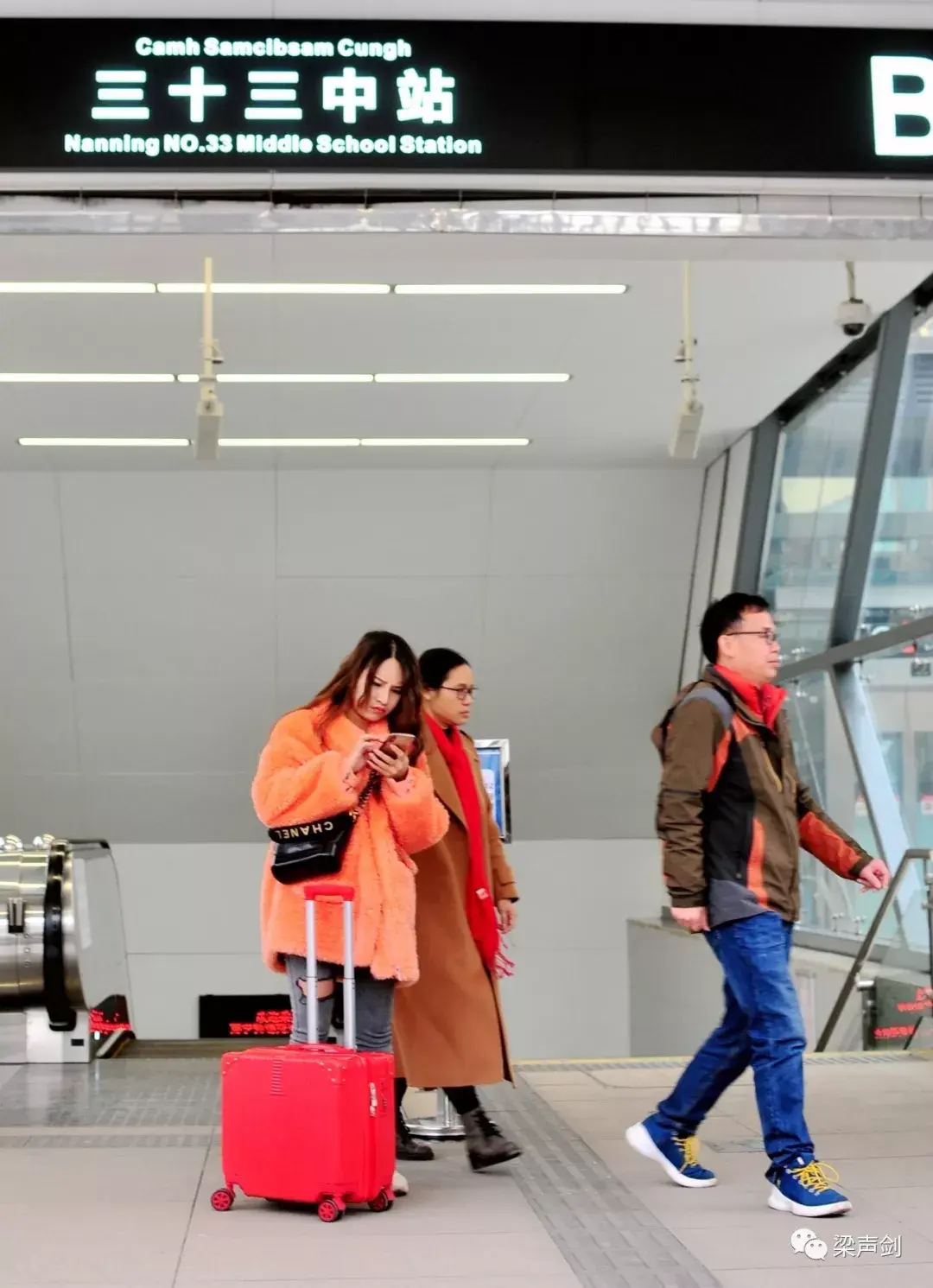 今天从步入校门到步出校门,只有区区的两个半小时,就像当年在教室考场里做一份考卷,一直在争分夺秒拍摄各个场合和情景,生怕错过眼前的每一个精彩。那张在签到墙前为一家三口拍的全家福合影,多么幸福温馨的画面,小孩子妈妈眯眼还在陶醉中,我没来得及问是老师还是校友,就走出校门拍摄完上面最后一张照片,是不那么心甘情愿地把相机收到背包里,然后依依不舍地回首看了一眼三十三中校门、四个大红灯笼和那条耀眼“热烈庆祝”的横幅就走进地铁站了。因为当天下午要到广州开会,所以11:30前就得离开学校,坐上地铁2号线三十三中站到南宁站去坐高铁,只有3个地铁站而已。