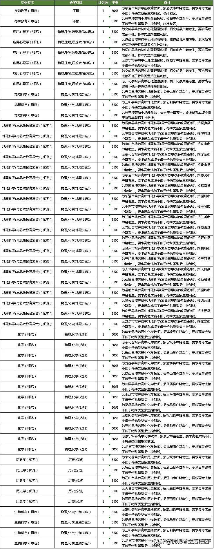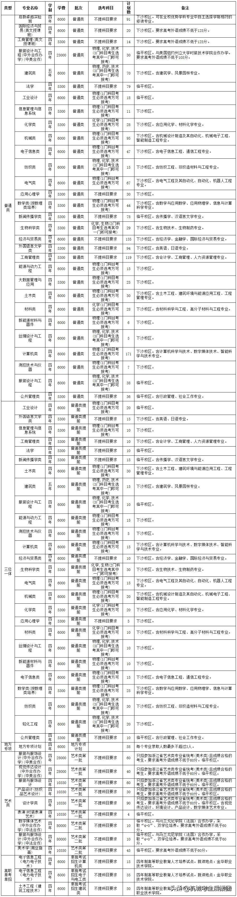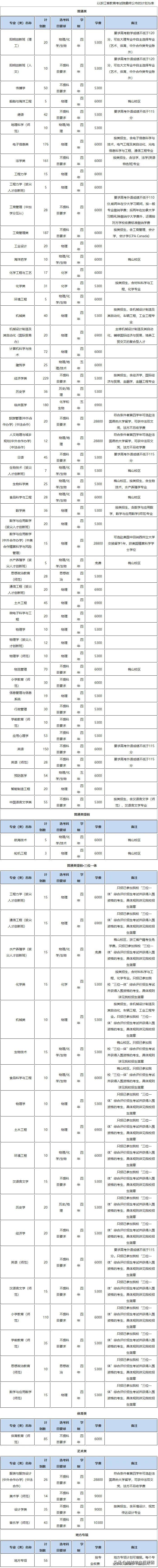 浙江省普通录取招生计划表