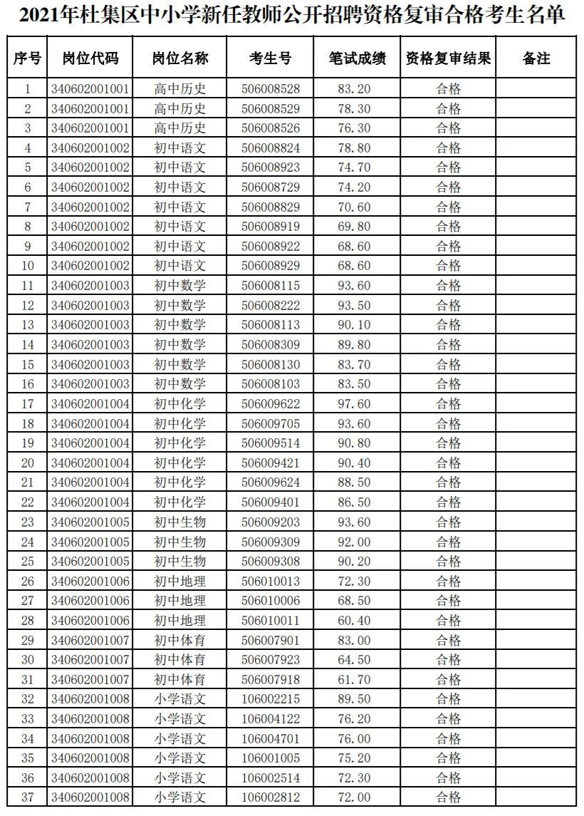 2021年度淮北市直及市辖二区中小学新任教师公开招聘资格复审合格考生(见附件1、2、3)。
