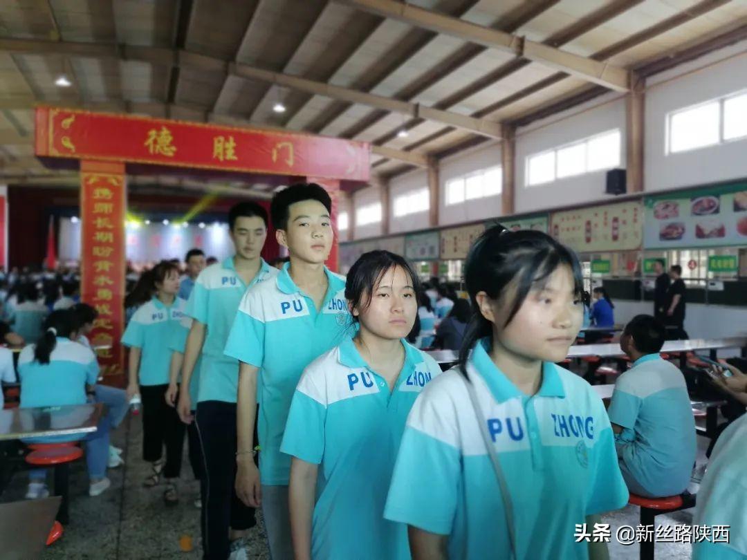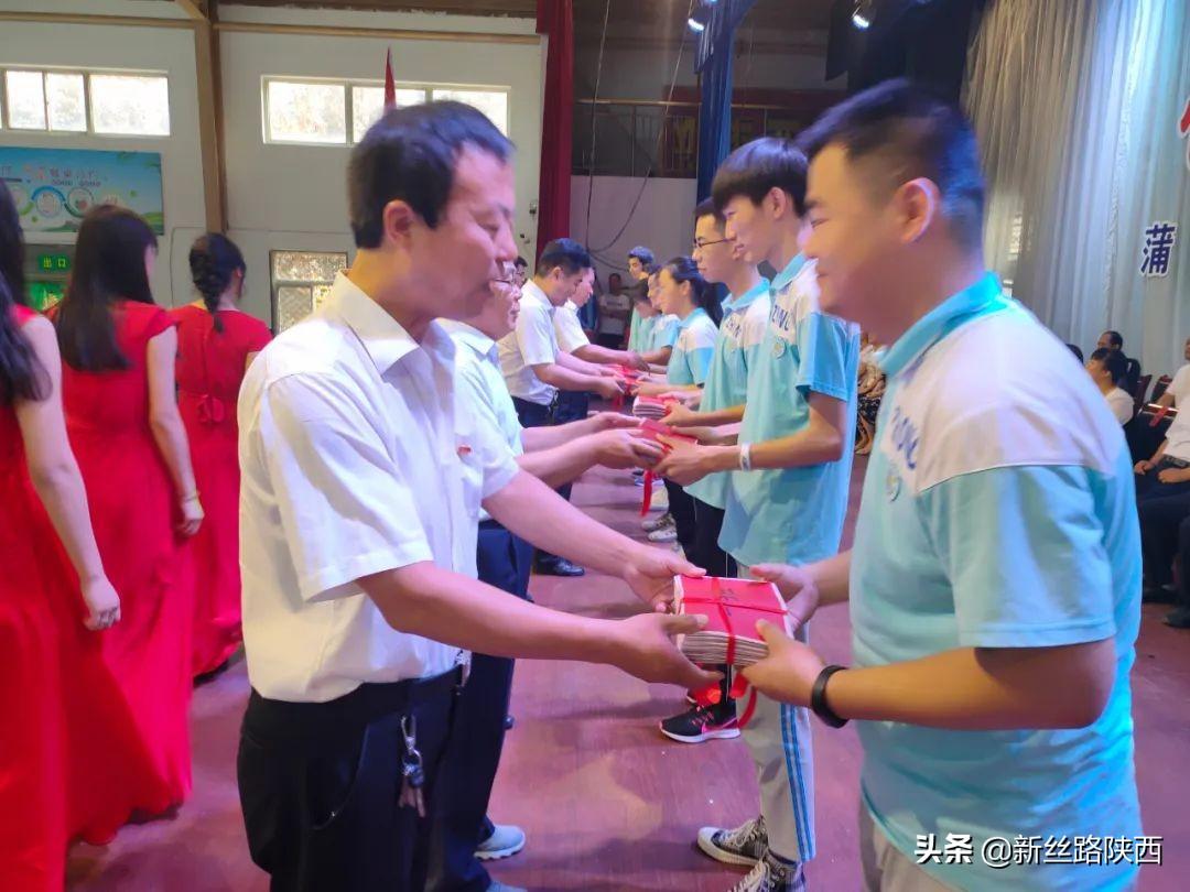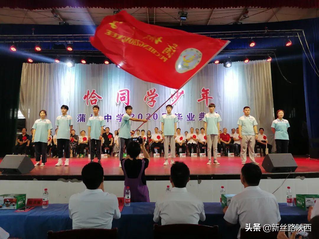 校旗传递,校志传承。毕业生代表向高二学弟学妹传递校旗,全体师生齐唱《蒲城中学校歌》,将毕业典礼推向高潮。