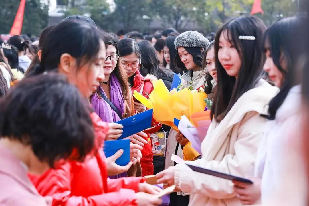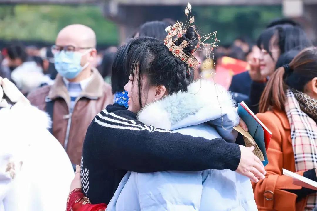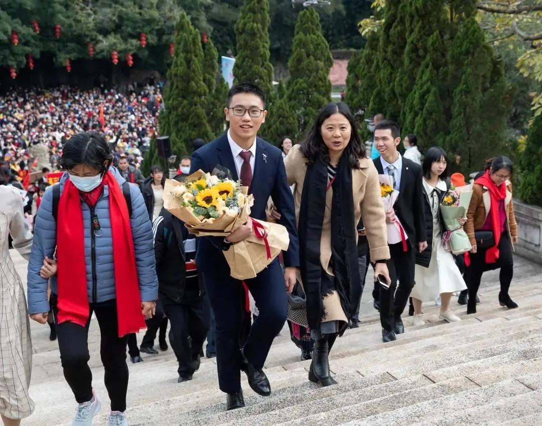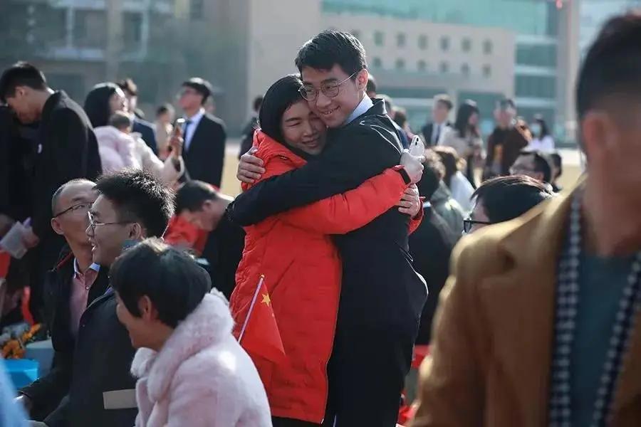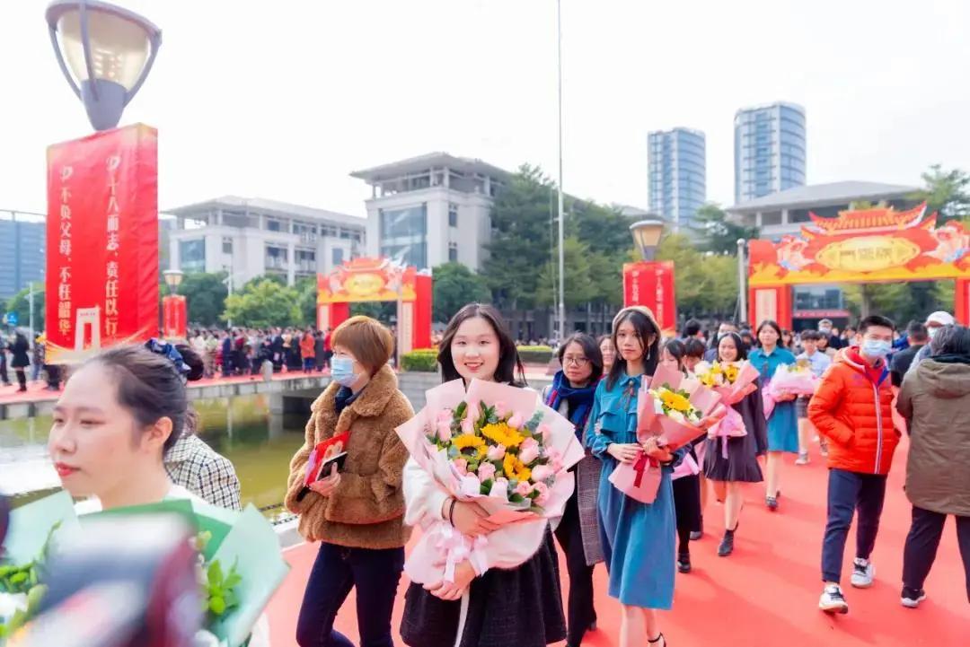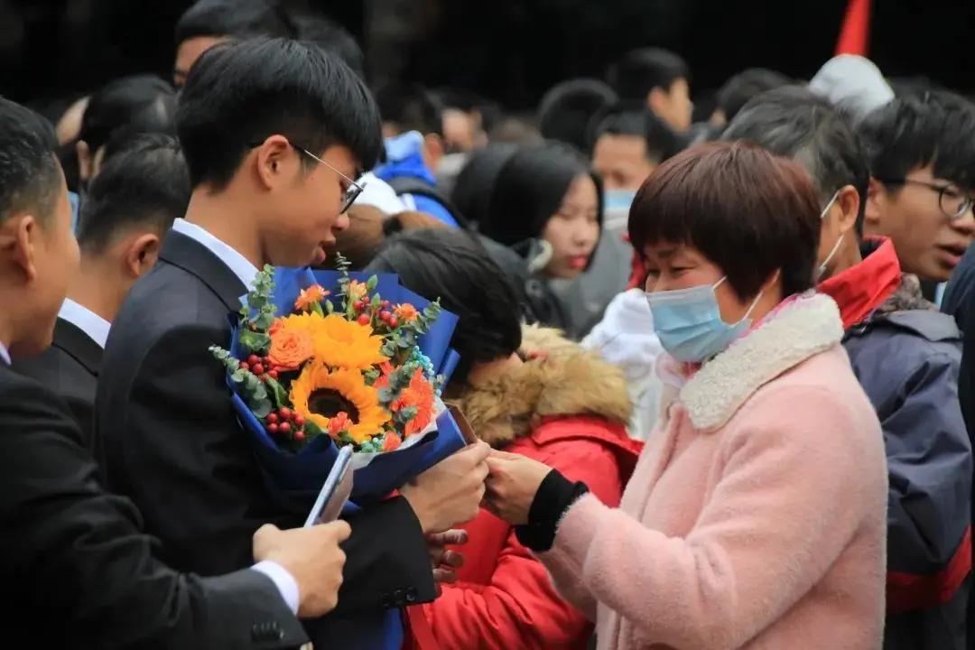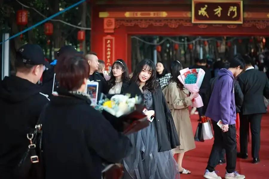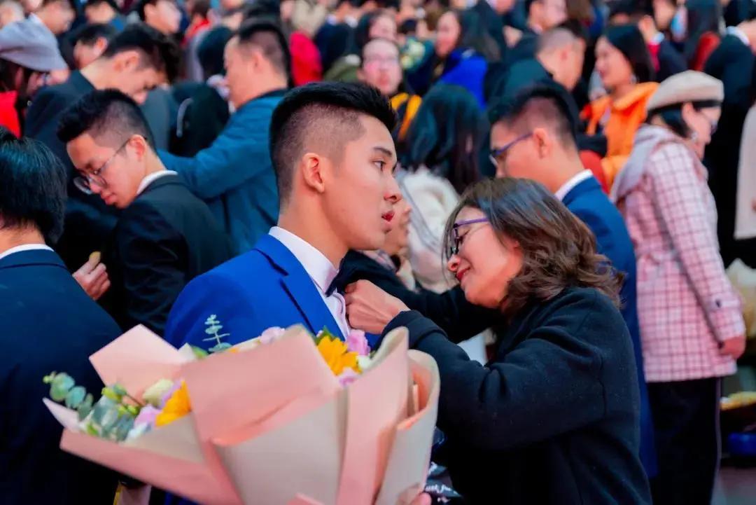 校园里处处可见手捧鲜花的家长们,脸上洋溢着难掩的笑意,似乎比孩子们还兴奋。从宿舍出来,男生们换上利落西装,帅气又潇洒,女生们穿上漂亮长裙,得体又端庄。他们昂首挺胸,春风满面,迈着自信的步伐,走向他们的人生主场。