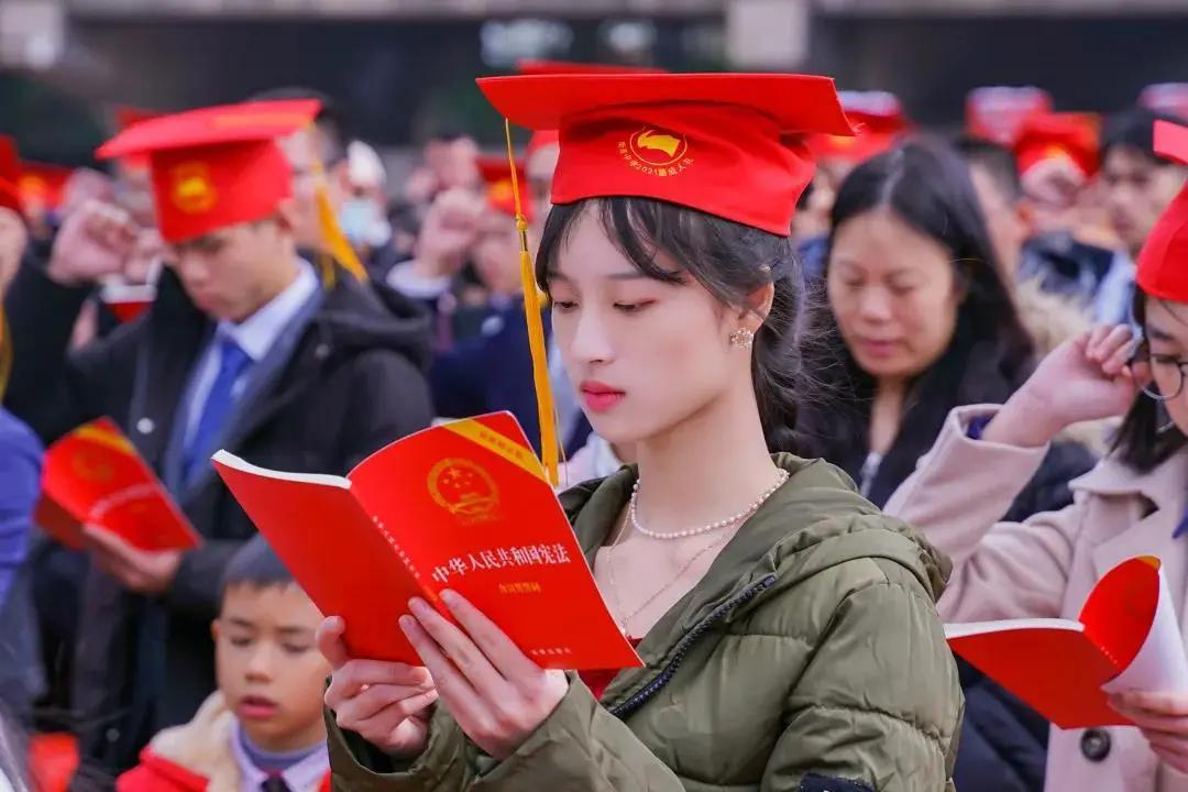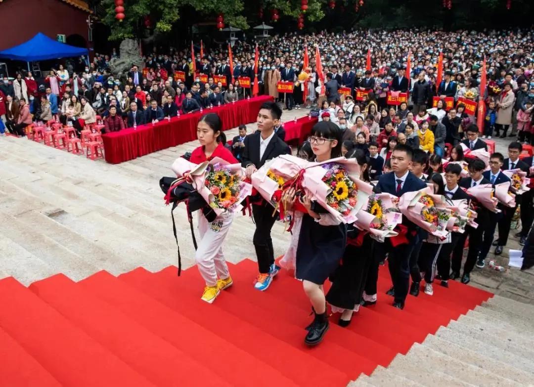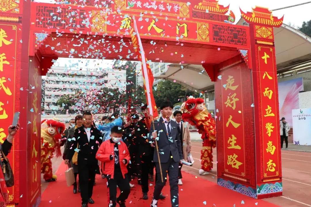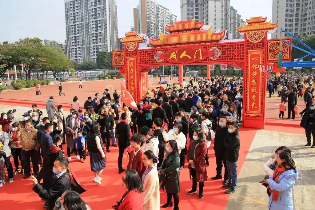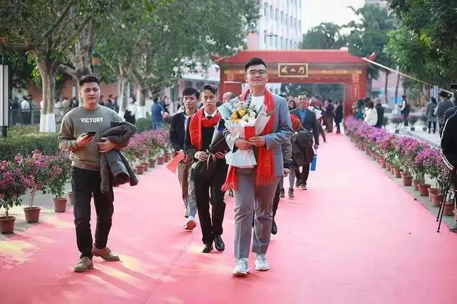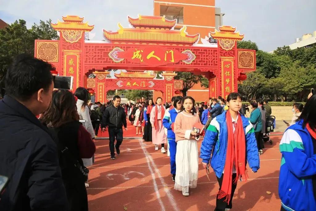 2020年12月19日,顺德一中校园披上鲜艳的“红装”——火红的成人门、火红的成人桥、火红的成人旗……2021届高三级954名学子迎来了“红红火火”的十八成人礼仪式。
