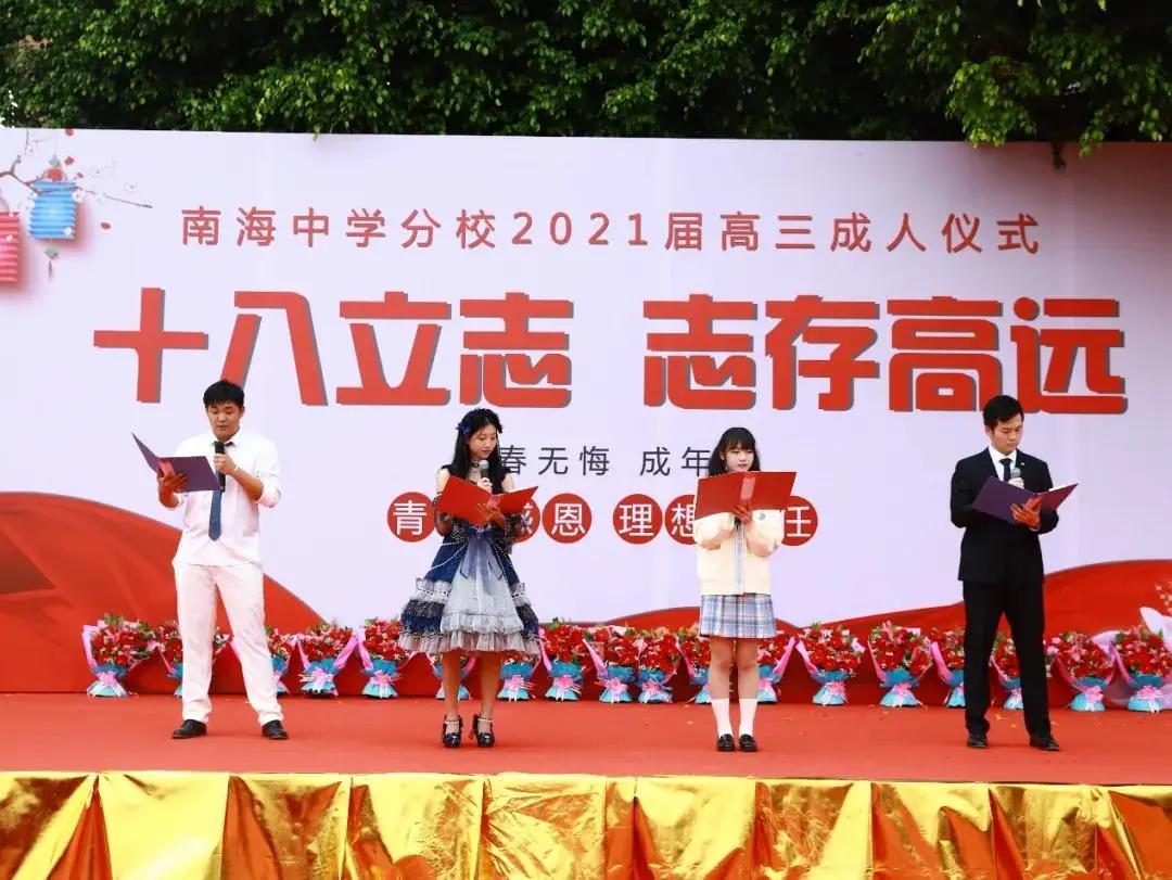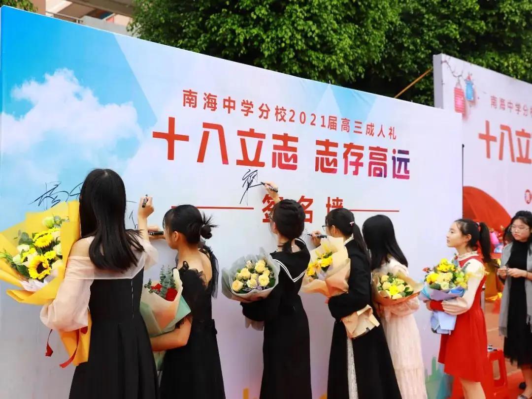 十八而志,志存高远!南海中学分校高三级成人典礼在老师们的祝福声中落下帷幕。此次活动的成功举办,标志着同学们从此步入了成人行列,人生的史册翻开了崭新的一页。愿南分的高三学子们怀揣着父母与老师的希望,不负韶华,努力拼搏,为实现自己的梦想不断奋斗与前进。
