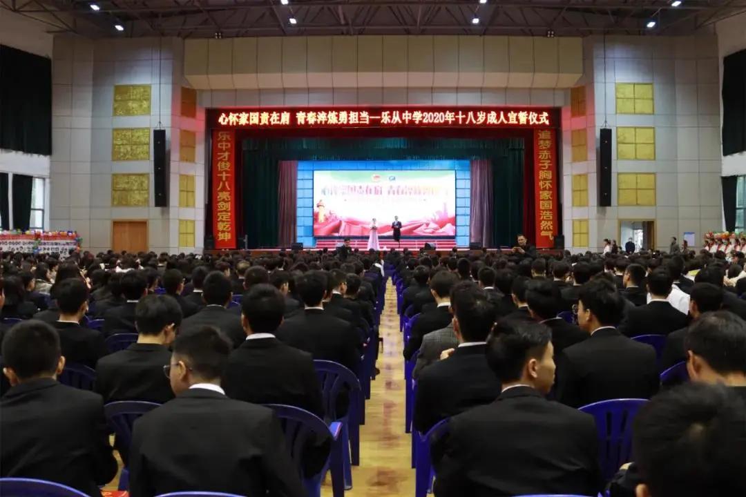 12月18日上午,乐从中学于体育馆隆重举行2020年十八岁成人宣誓仪式。全体高三学生欢聚一堂用热情点燃这一场盛大典礼,以“心怀家国责在肩,青春淬炼勇担当”为主题,怀揣着对未来的无限期许,肩负着学校的美好希冀,迈入人生新阶段。