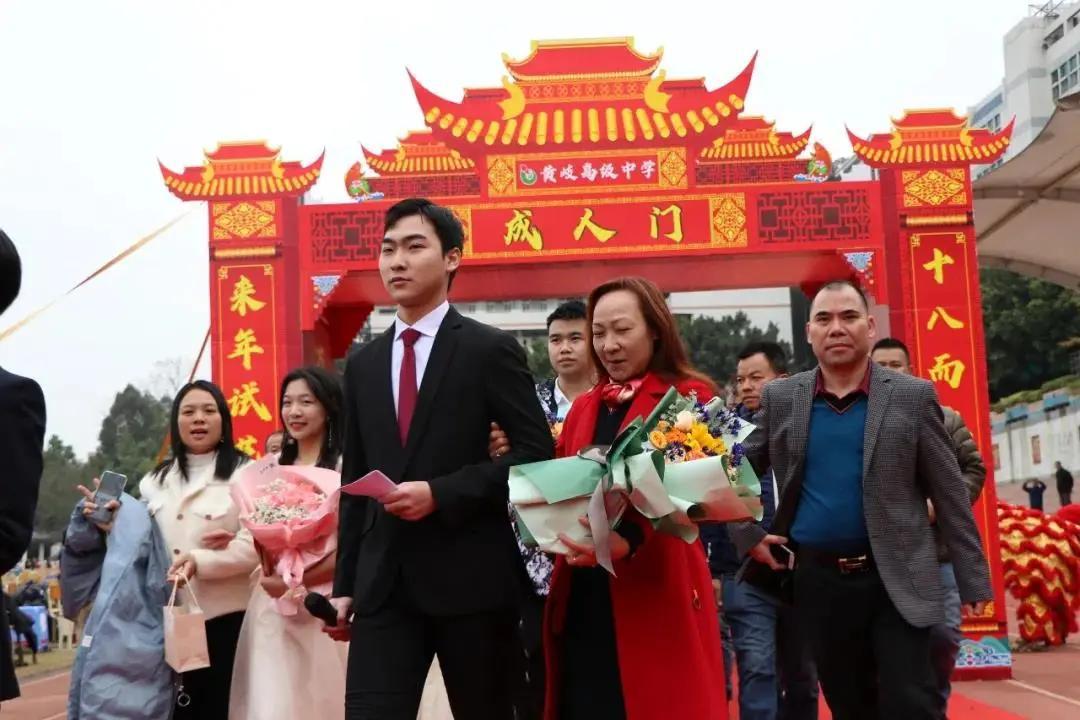 12月19日清晨,寒意冷冽,枝头依然暄妍的羊蹄甲花用一抹紫粉催醒天空。操场上满眼绿意,红毯一字铺开,高门矗立,“十八而立,梦绘青春”的阔幅海报赫然入目。瑞狮舞动,锣鼓声声。现场早已是人头涌动,热闹非凡。我校为即将成年的高三学子而设的隆重的“成人礼”即将在此举行。眼前,一张张青春脸庞或西装笔挺或礼服雅丽,三三两两,手捧鲜花,笑意嫣然,用帅气和靓丽为寒冬增添了丝丝早春气息。站在家人身边,俨然可以壮阔胸膛匹敌寒风,用肩膀撑起一片长天。