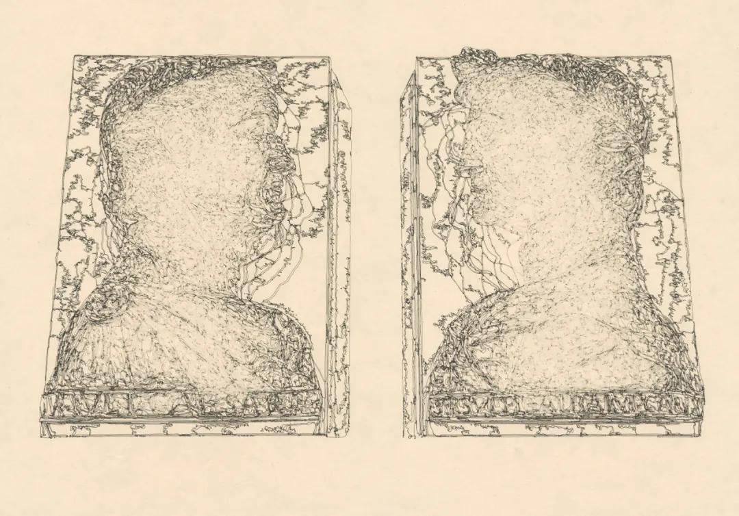 图29 徐冰《WISH YOU WERE HERE-1》水印木刻 79×6cm 2019年