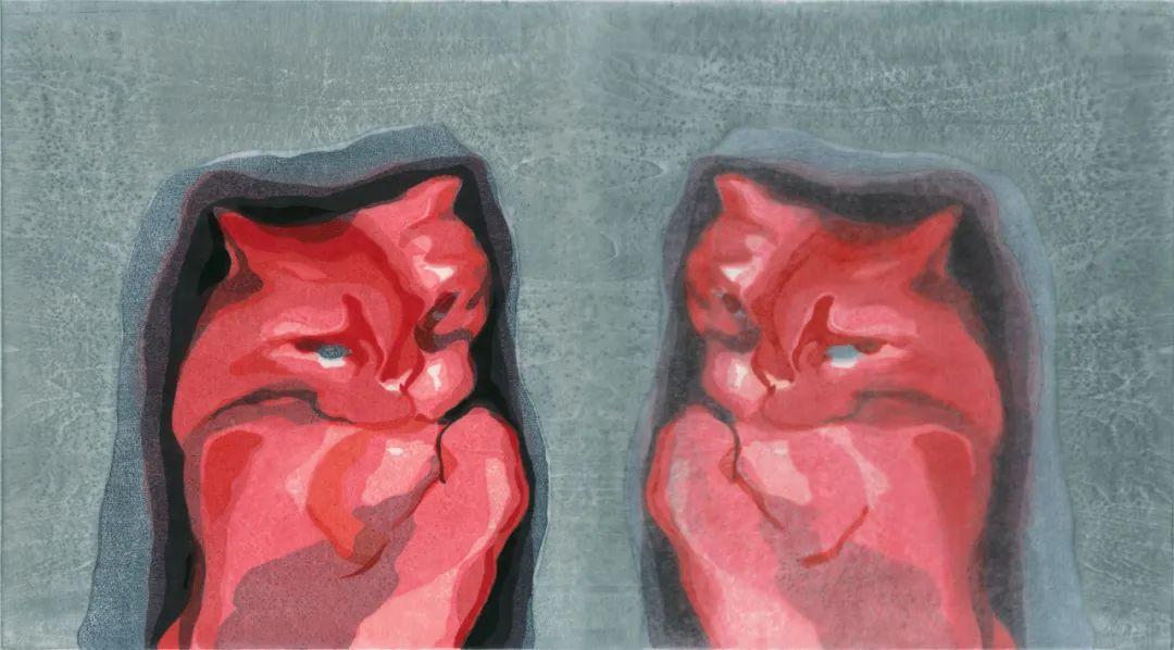 图23 游宇《搪瓷·red》水印木刻 96×120cm 2015年