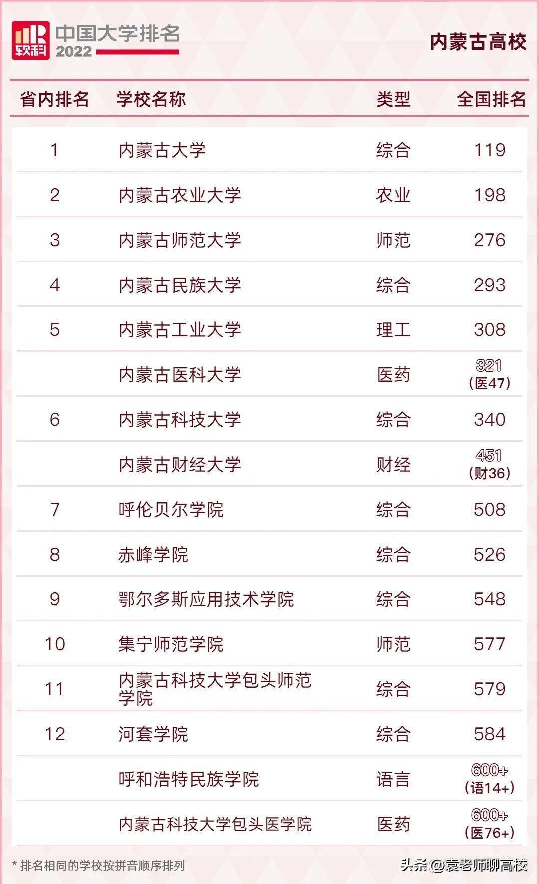 以2022年内蒙古软科高校排名来看,呼尔贝尔学院位居省内第7位,全国第508位,赤峰学院位居省内第8位,全国第526位,河套学院位于全国第584位,省内第12位!