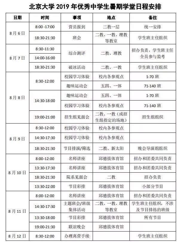北大暑期学堂(即综合营)是北大每年举办的最大夏令营,不仅参与考生人数最多,涉及范围还最广,是广大新高三最为关注的夏令营之一。该综合营只能通过中学发放的邀请码报名,没有邀请码的考生不能报名。