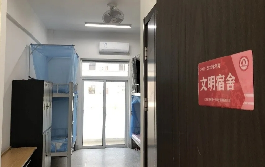 我校学生宿舍设施完备,宿舍提供空调、单独橱柜、盥洗室、淋浴房、卫生间,24小时供应热水和开水,宿舍区内配有公用冰箱、微波炉、手机充电房等设施,医务室每天晚上安排一名医生值班。
