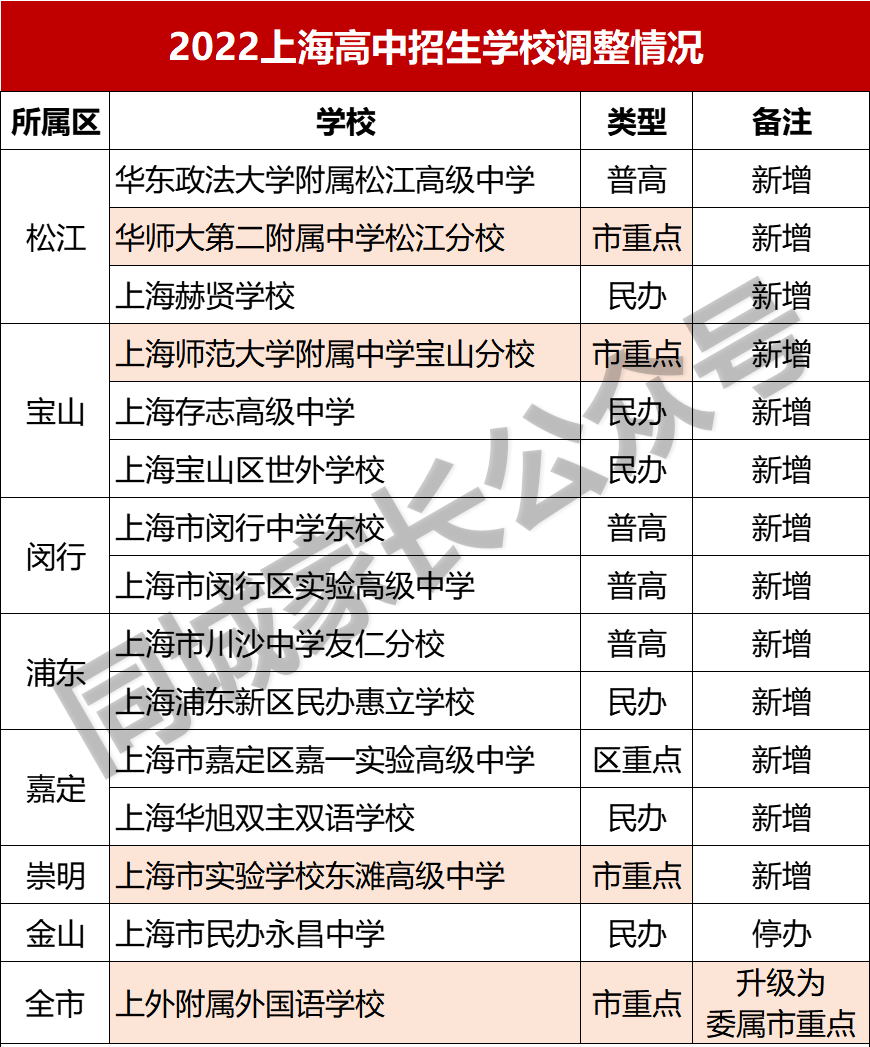 2022年,新增高中13所,停招学校1所,上外附中纳入委属,一起来看看最新情况: