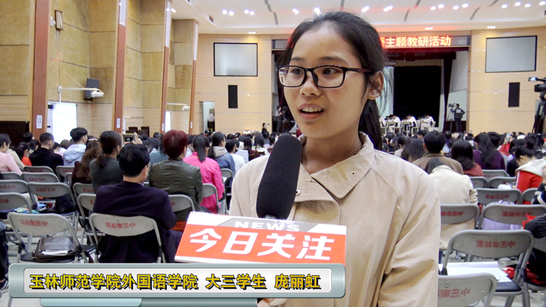 ——我们主办这次活动呢,主要是基于让我们广西的初中英语老师专业发展的需要,通过专家引领、团队的协作,帮助我们初中英语老师提高英语教学水平,这次我们请了北京师范大学的教授从理论提升,然后还请了北京的赵登禹中学老师进行了同课异构的两个方式,我相信对我们广西的初中英语老师的教学水平、教育理念的提升是极有帮助的。