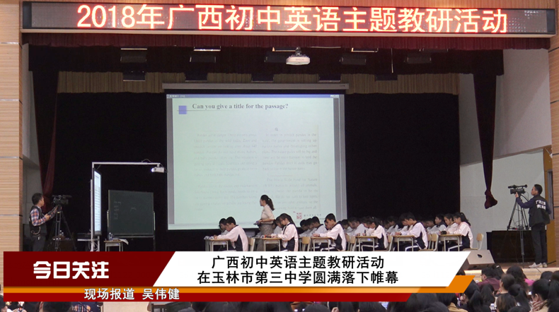 (现场报道 吴伟健 钟耀雨 钟明君)11月19日下午,为期两天的广西初中英语主题教研活动在玉林市第三中学圆满落下帷幕。由广西教育研究院主办,玉林市教育科学研究所承办的旨在提高广西全区英语教学水平和基础英语教学能力的教研活动吸引了来自全区各地的六百多名初中英语教师参加。