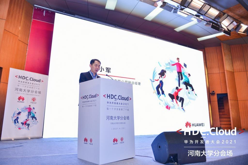4月25日上午,由河南省教育厅、华为技术有限公司主办,河南大学和中原鲲鹏生态创新中心承办的华为开发者大会(河南大学分会场)在河南大学计算机大楼二楼报告厅举行。河南省教育厅高教处副处长张小茜,河南大学党委常委、副校长许绍康,黄河科技集团副总经理张小军,华为河南云与计算总经理张光辉,河南大学教务处处长张向东,软件学院党委书记尚慧敏、院长何欣,鲲鹏教指委成员及25所鲲鹏产业学院领导和370余名师生代表参加大会。