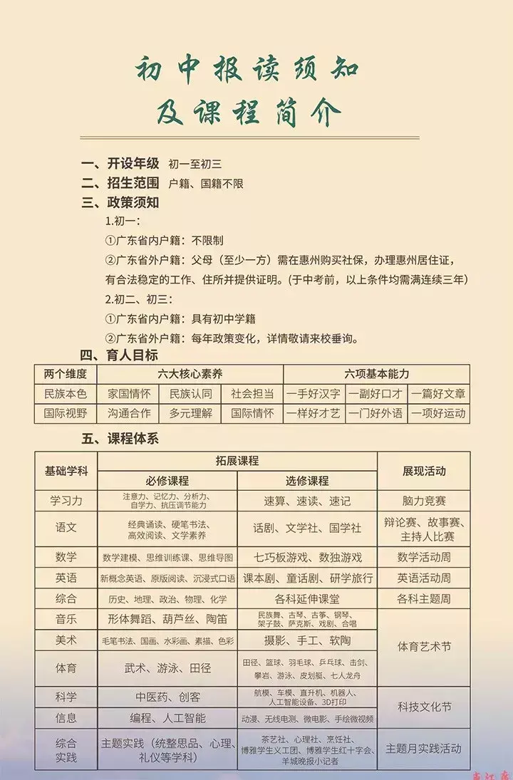 3.报名条件:小学六年级应届毕业生(不限户籍,非广州市户籍学生请留意异地中考条件)