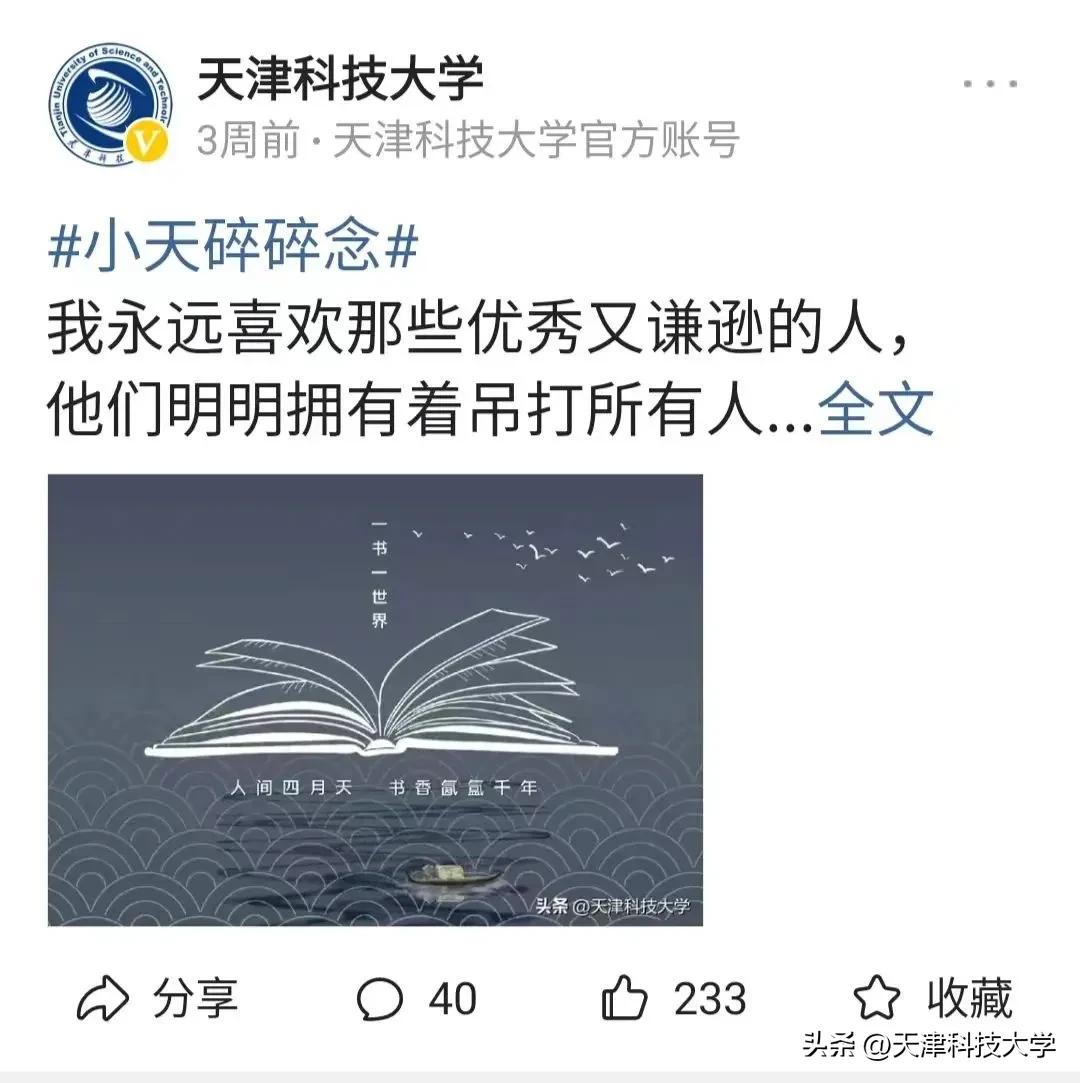 那么欢迎加入天津科技大学官方头条号!
