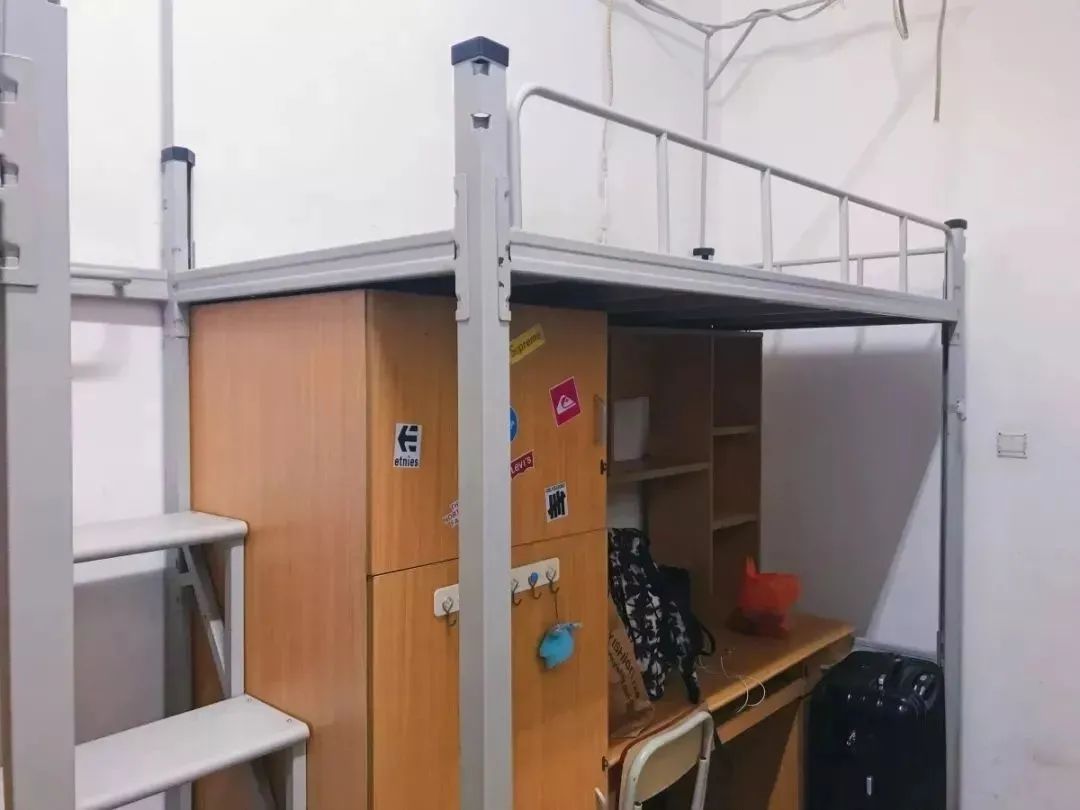 宿舍配置:4人间,上床下桌,尺寸为190*90cm,一人一个衣柜,配有空调及热水系统,每张写字桌均有网线插及电源插口。