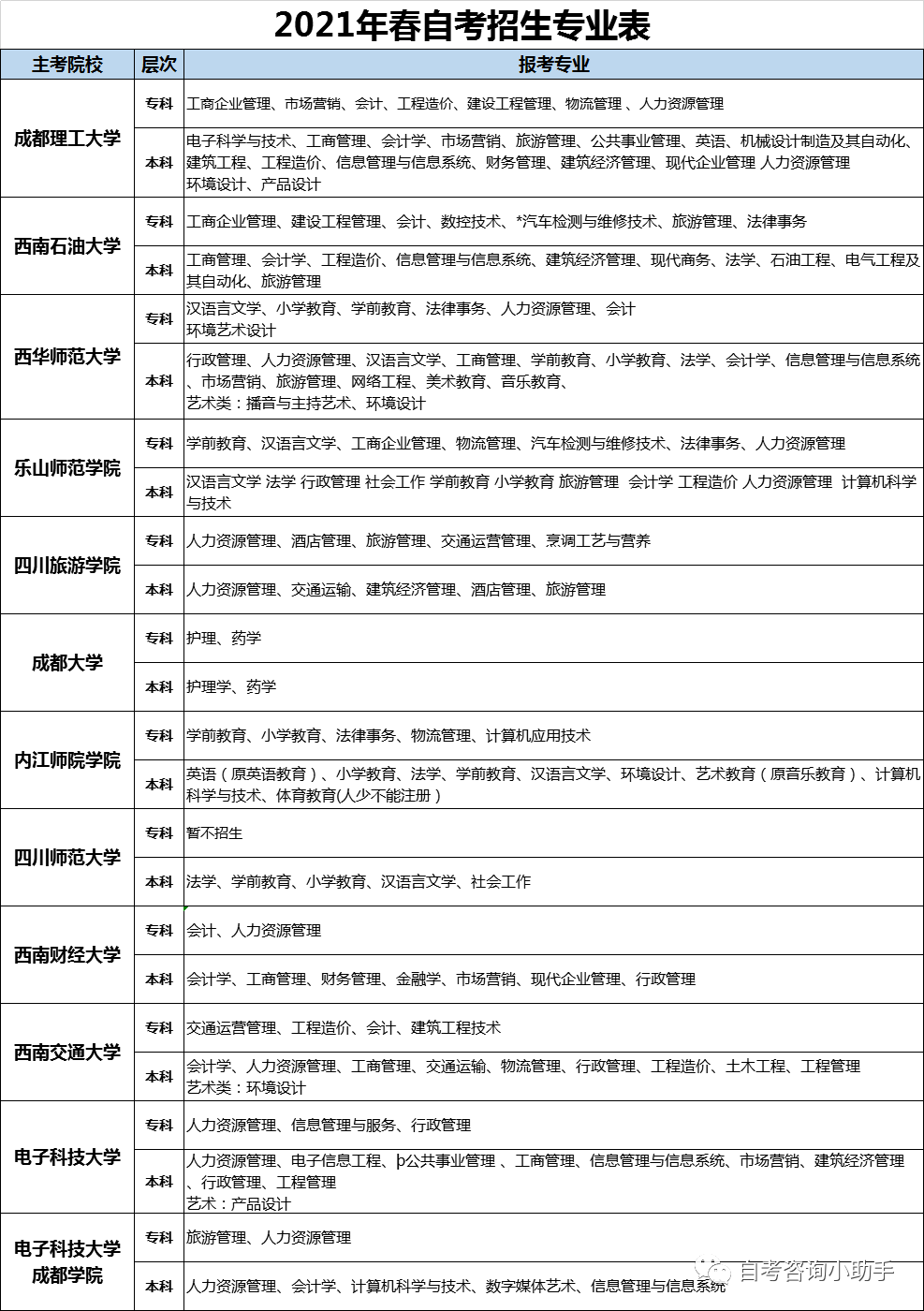 2021年四川小自考4月注册即将截止,此次注册可以参加6月校考、10月统考和12月校考,统考科目少的专业今年可以考完所有科目。明年即可申请毕业。
