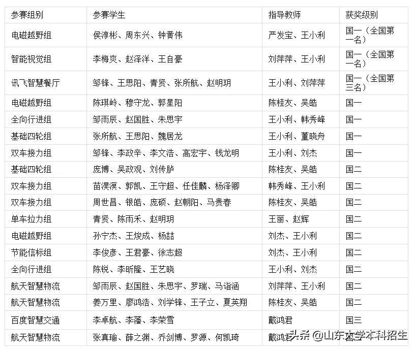 骄人成绩的取得,与学校的关注与重视密不可分。早在2020年10月开始,山东大学代表队便面向全校选拔成员,从来自各专业的500多名同学中层层培养选拔,最终共有来自动化、机械、电子、通信、计算机、软件等相关专业的近百名队员组成40多支队伍参赛,分别参加了电磁越野组、智能视觉组、全向行进组、基础四轮组、双车接力组、讯飞智慧餐厅、单车拉力组、节能信标组、航天智慧物流、百度智慧交通等10个分项比赛。