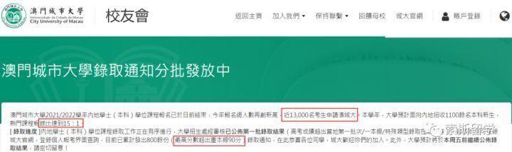 近年来,澳门城市大学申请人数破万频频冲上热搜,在2021内地学士学位课程报名中,申请人数又创新高,有近13000学生申请澳门城市大学,报录比高达15:1,最高录取分数已经超出一本线90分,今天小编就和大家聊聊澳城大这匹黑马院校到底有什么迷人之处!