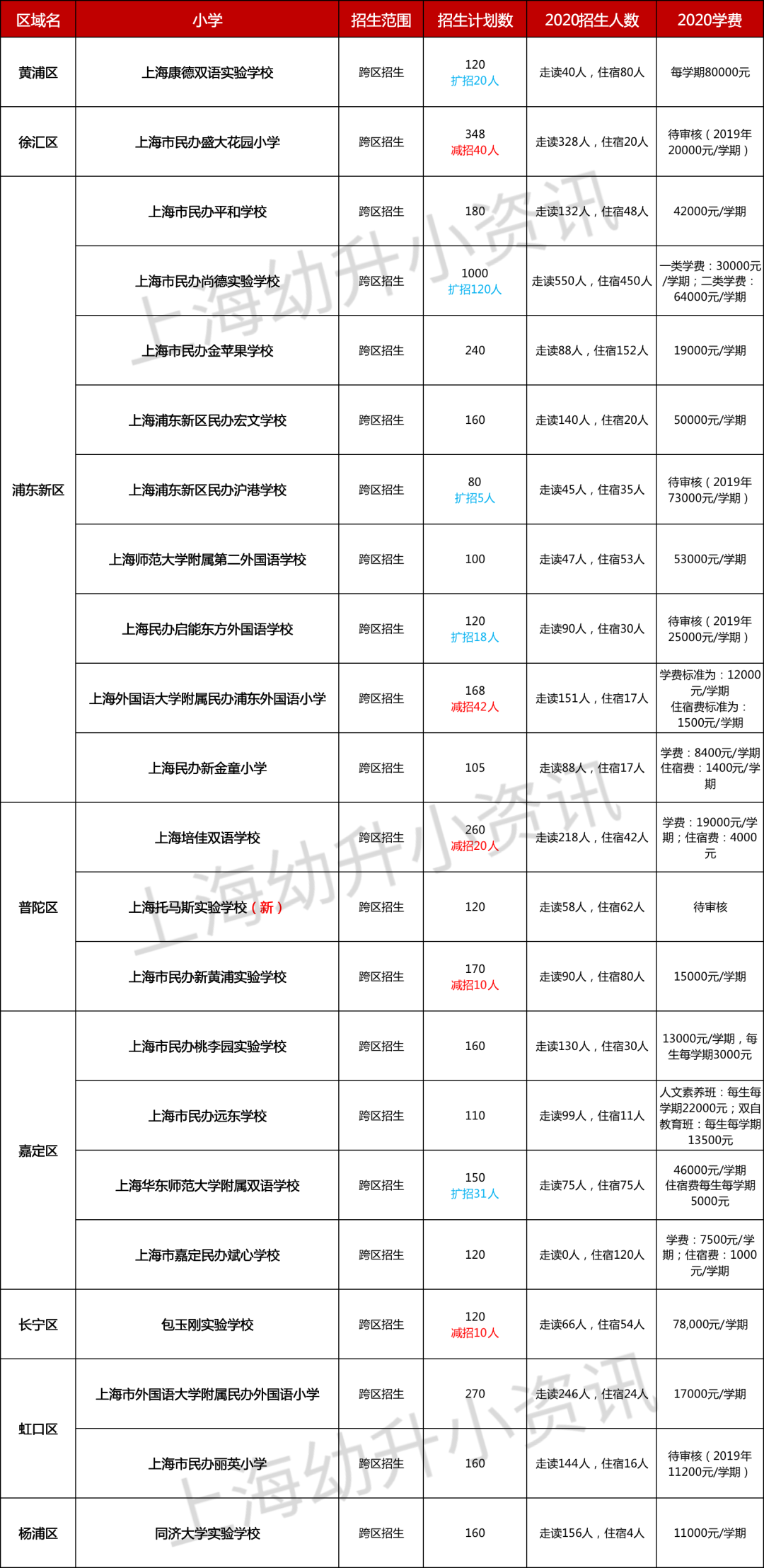 2020年,上海一共有84所民办小学招生,其中有46所全市招生!相比于去年,减少了7所!