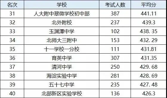 中考总分(不含加分)海淀区前10名,人大附中5人,位列海淀区第一