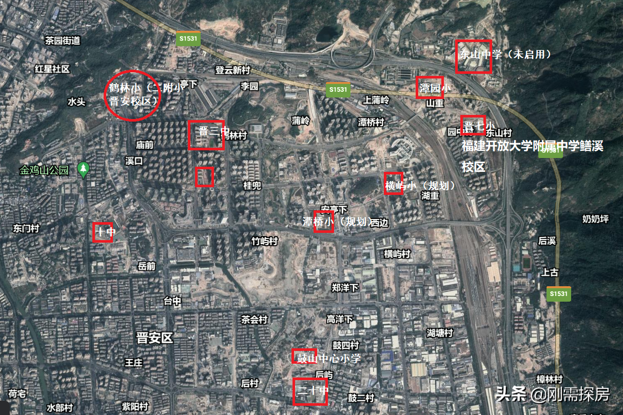 分析:这两个安商房的划片,非常典型,商品房业主划片晋一小,而里面的拆迁户村民,可以去鹤林小,如今晋安区唯一的市属小,二附小晋安校区。